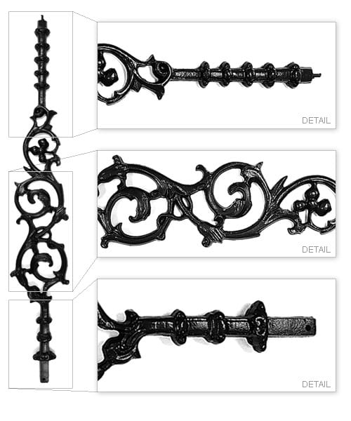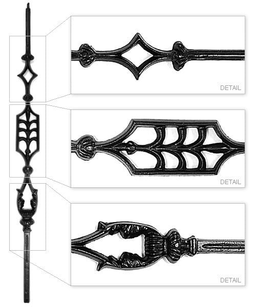 Here are a selection of our most popular cast iron balusters. These balusters are made from spherical graphite cast iron making them easily weldable using a cast iron to steel welding rod.