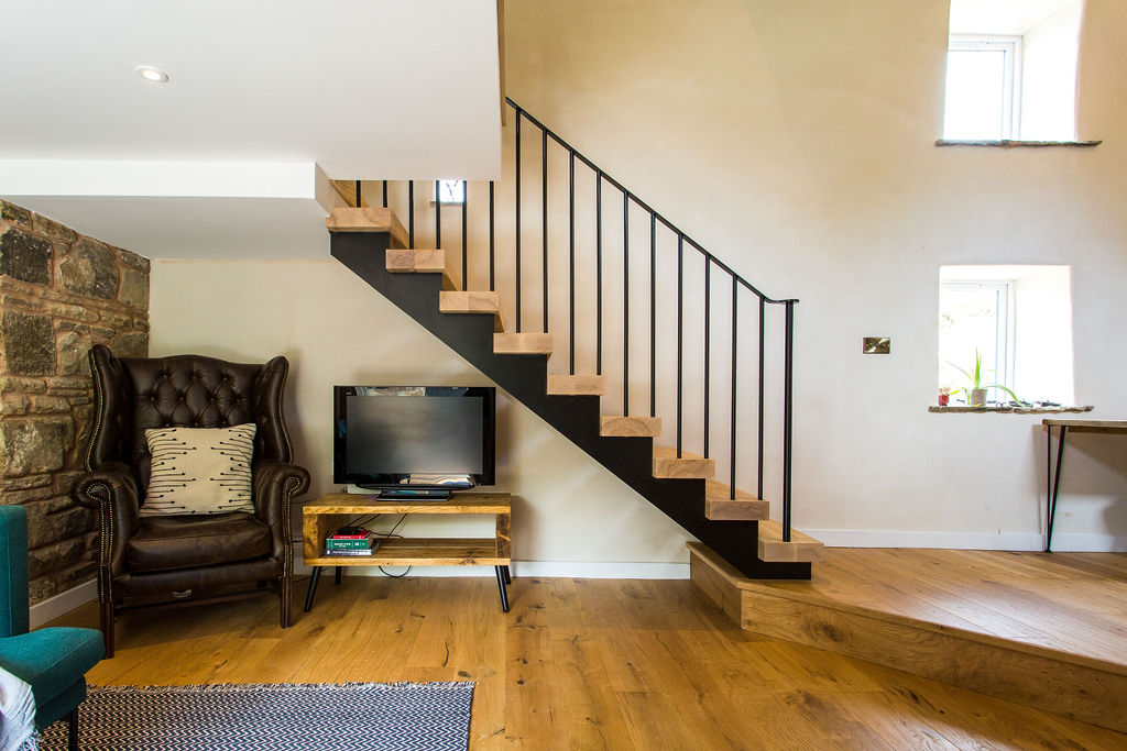 Barn conversions offer a rare blend of a characterful and storied structure with an almost blank internal canvas for homeowners to explore and develop. The high ceilings within these buildings make them particularly suitable for adding extra levels. We’ve crafted staircases for a number of these projects over the years to complement the homeowners preferred style, ranging from country cottage to industrial chic. Recently we worked on a beautiful stone barn just a short hop from our workshop here in the Peak District, providing a modern steel and ash staircase and balustrade as part of the building’s conversion into a holiday let – Cracken Edge Barn.