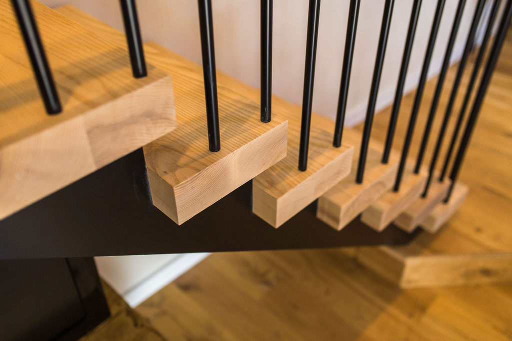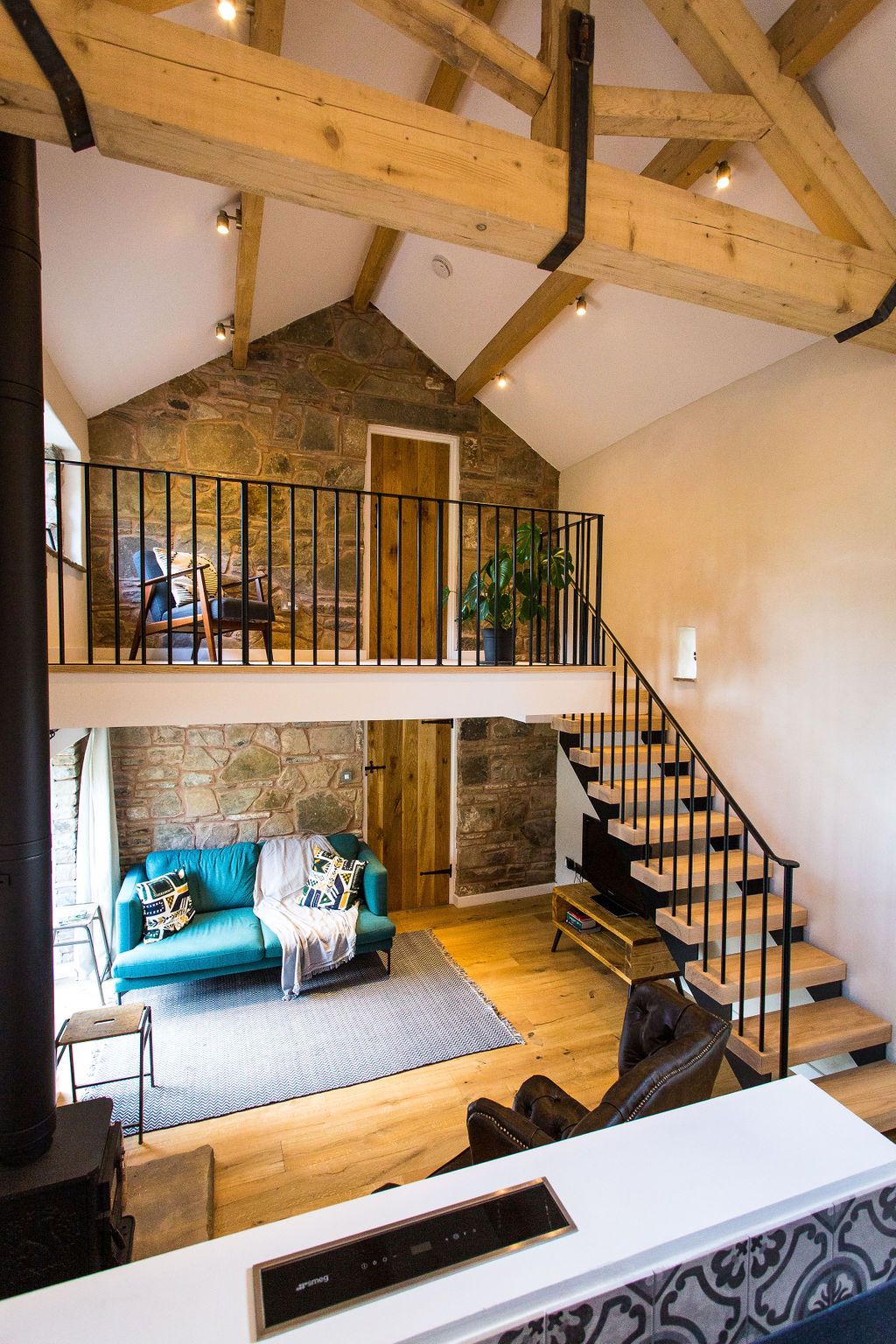 It was all incredibly easy, after a couple of phone calls Richard came out to visit the site, discuss a design and measure up. As they are local, I popped into their showroom to see examples of the type of thing they could build, and I shared a few drawings and examples of what we had in mind from Pinterest and Instagram. I love the simplicity of the ash wood and steel together and as Cracken Edge Barn is located halfway up a hill towards a dis-used stone quarry, the industrial design compliments the nature of the area too. Within a week the team had designed the staircase and shared some 3D drawings which really helped us visualise what it would look like.”