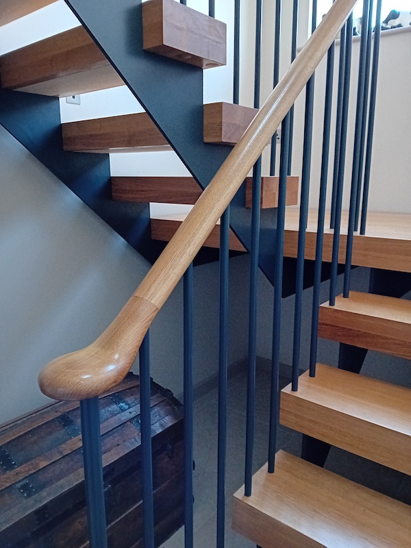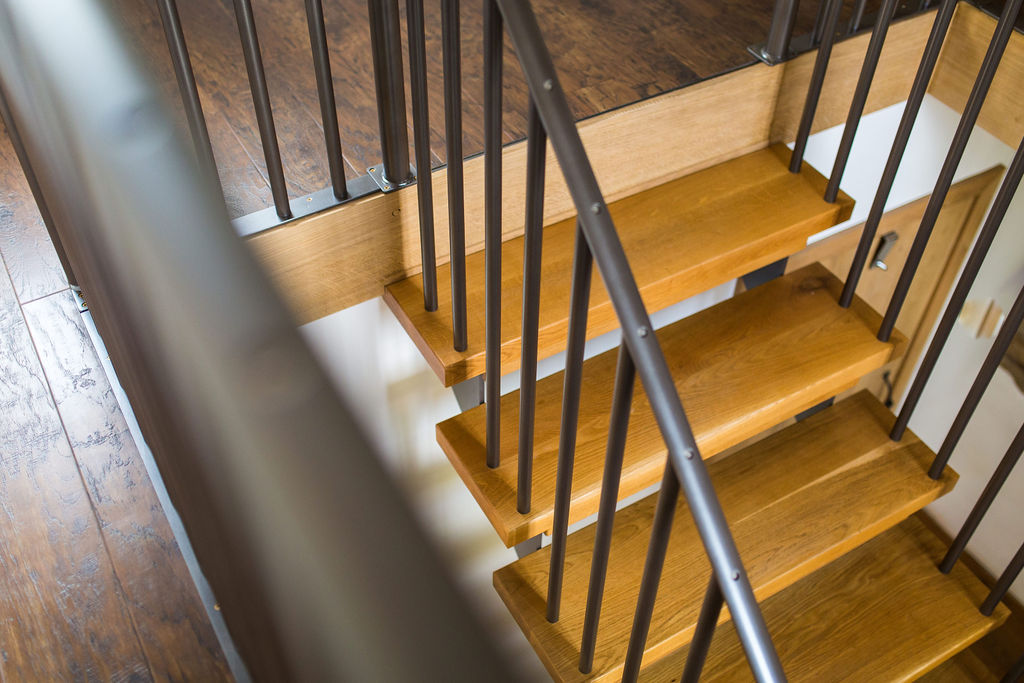 Your handrail can be designed with a hardwood to match your treads or with a simple metal finish